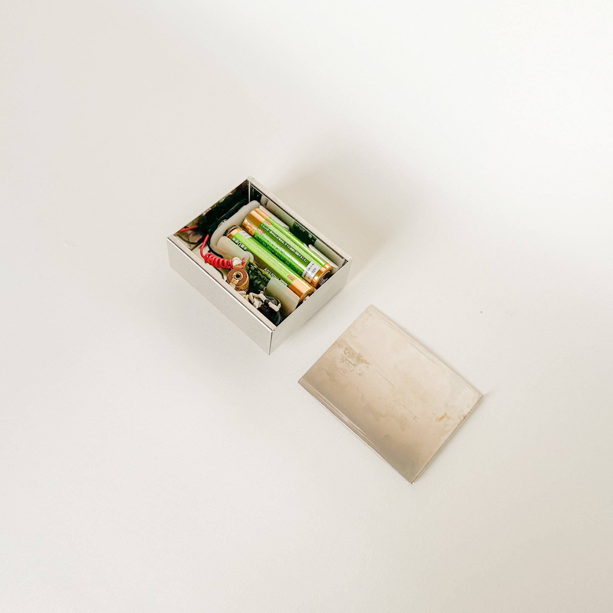 素材:ステンレス、ガラス(鏡)、プラスチック(ボタン)